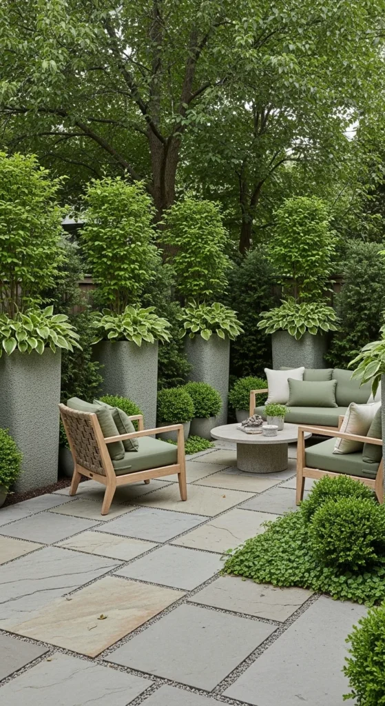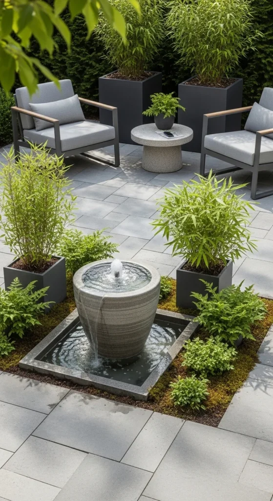 Water features bring sound that masks street noise. Small fountains work better than ponds for most yards. Plug-and-play kits install fast. Moving water shifts the mood instantly. Place the feature where it’s visible from seating, not tucked away. For DIY builds, use a glazed pot with a recirculating pump. Keep splashing minimal to avoid mess. Clean filters monthly so flow stays steady. Surround with plants to blend edges into the patio.