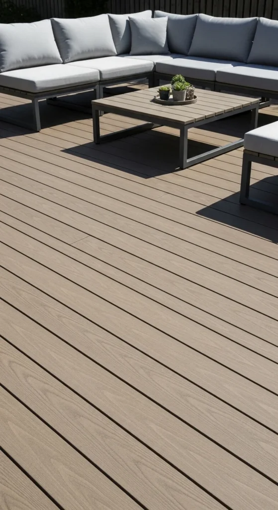 Composite decking handles moisture and sun without constant sealing. It works well for patios connected to homes. Low upkeep surfaces save weekends. Install boards with proper spacing for drainage. Match deck color to furniture for a cohesive look. For budget control, use composite only in high-traffic areas and mix with pavers elsewhere. Keep the design simple so the material doesn’t dominate visually.