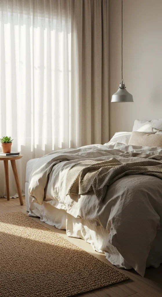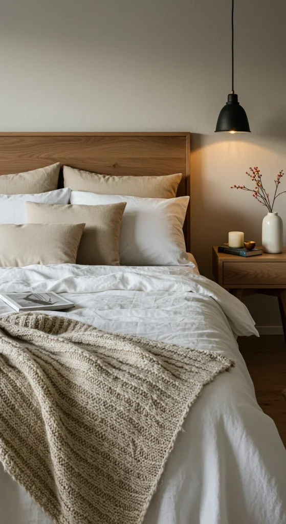 Your bed is the heart of your room — make it irresistible. Layer sheets, blankets, and throws in soft, breathable fabrics. Mix materials like linen, cotton, and knit for dimension. Stick to calm tones like ivory, sand, or blush. **Layering adds warmth** and makes your bed look intentionally styled, even on busy mornings.