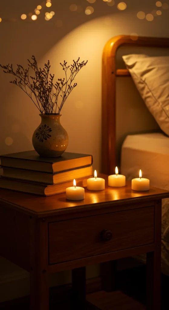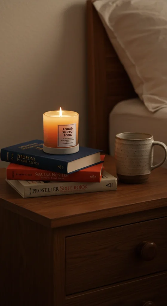 Books add character and warmth. Stack a few on your nightstand for height and personality. Top them with a candle or small vase for a finished look. They make functional decor that reflects your interests.