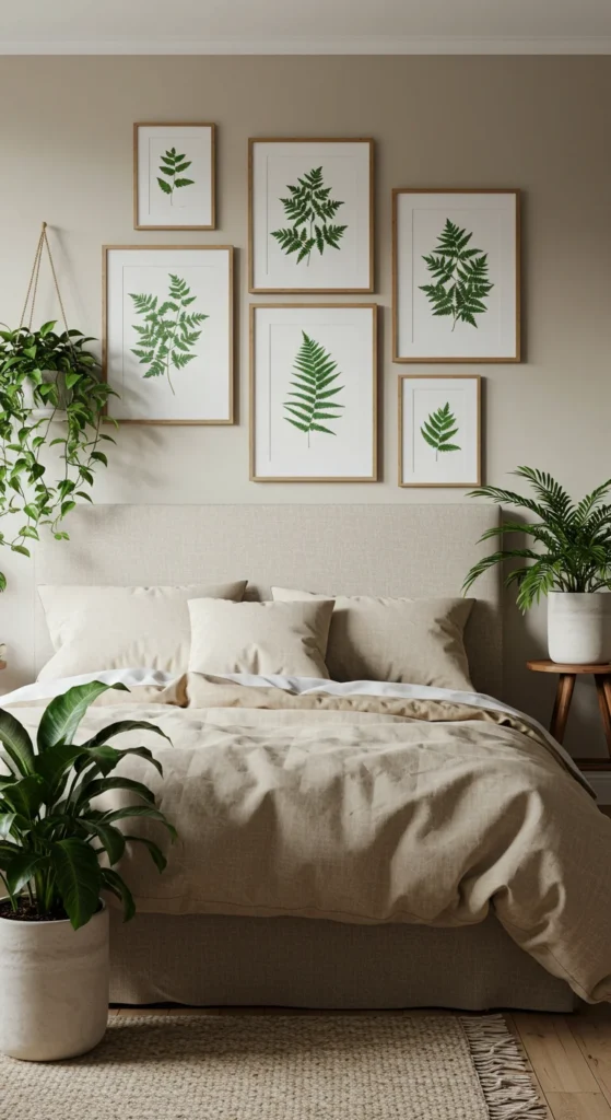 Nature-themed art adds freshness without actual plants. Choose vintage botanical prints or minimalist line drawings. Keep frames consistent in color for a cohesive look. It’s a subtle way to bring nature into your decor.