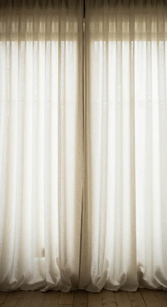 Linen curtains are classic and breathable. They diffuse light gently while adding warmth. Always hang them high — near the ceiling — to elongate your walls. Match them to your bedding for a seamless, serene flow.