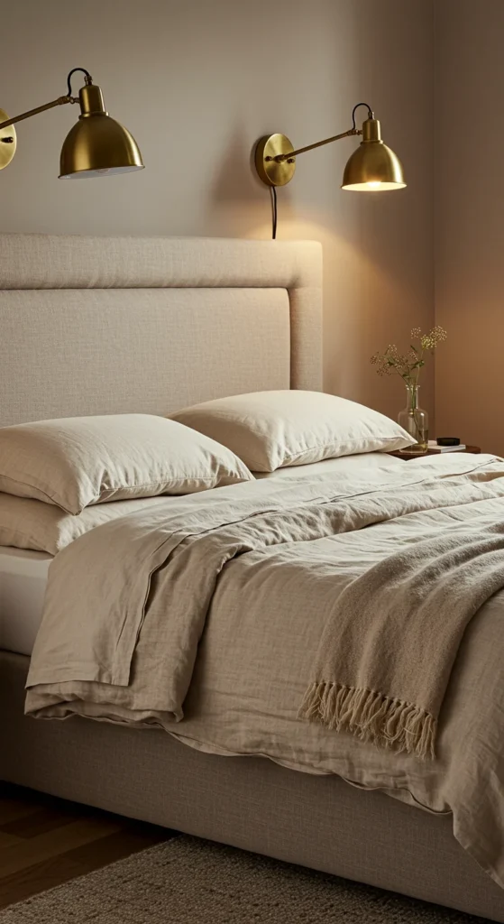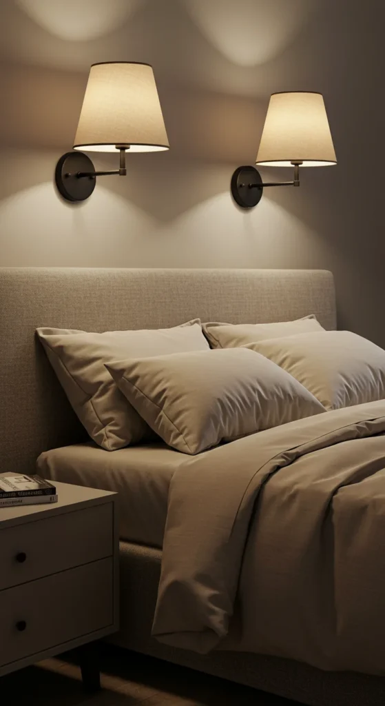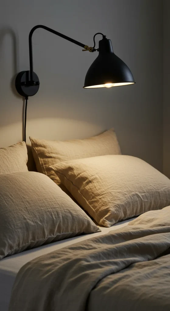 Wall-mounted reading lights save space and feel sophisticated. Adjustable arms help you aim light where you need it. Match the metal tone to your decor — brass for warmth, black for contrast. It’s both practical and stylish.