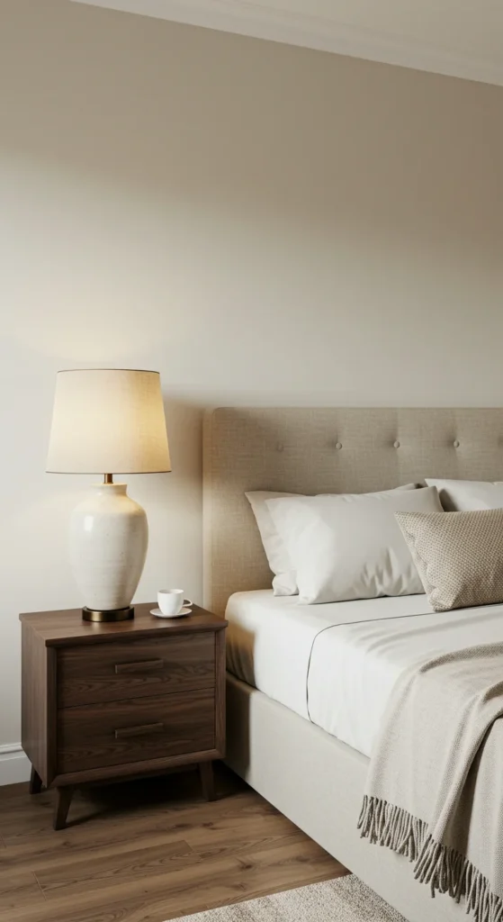Lighting sets the mood. Use warm bulbs with linen or paper shades for gentle diffusion. Place one lamp on each nightstand for symmetry. Dimmable options help you wind down comfortably. Even affordable lamps can create **a high-end, calming glow**.