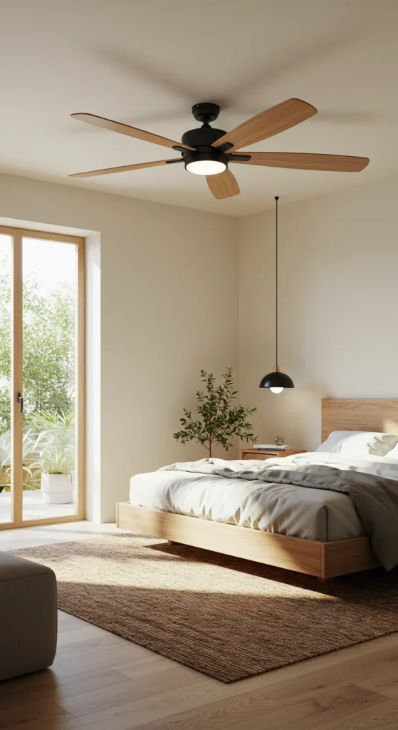 Ceiling fans can look stylish when chosen thoughtfully. Go for wood or black finishes to match your decor. They circulate air and make warm nights comfortable. Combine with layered lighting for function and aesthetics.