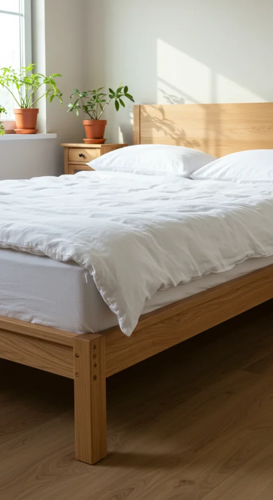 Wood adds warmth and timeless appeal. A solid wooden frame grounds your room and feels organic. Choose oak, walnut, or pine depending on your palette. It’s a piece that lasts and gets better with age.