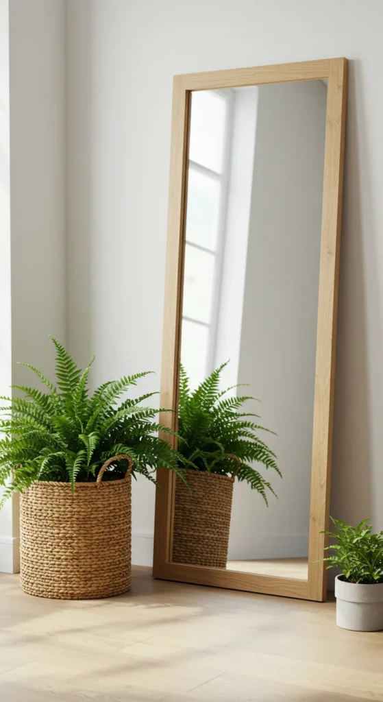 A mirror brightens your room and makes it feel more open. Lean it casually against a wall for a relaxed look. Add a small rug or plant nearby to frame it. It’s both decorative and practical for getting ready.