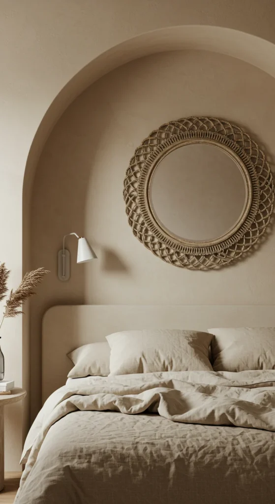 Paint an arch to define your headboard area. Use a soft, muted color for subtle depth. It’s renter-friendly and budget-friendly — no construction needed. This simple paint trick instantly adds architectural interest.