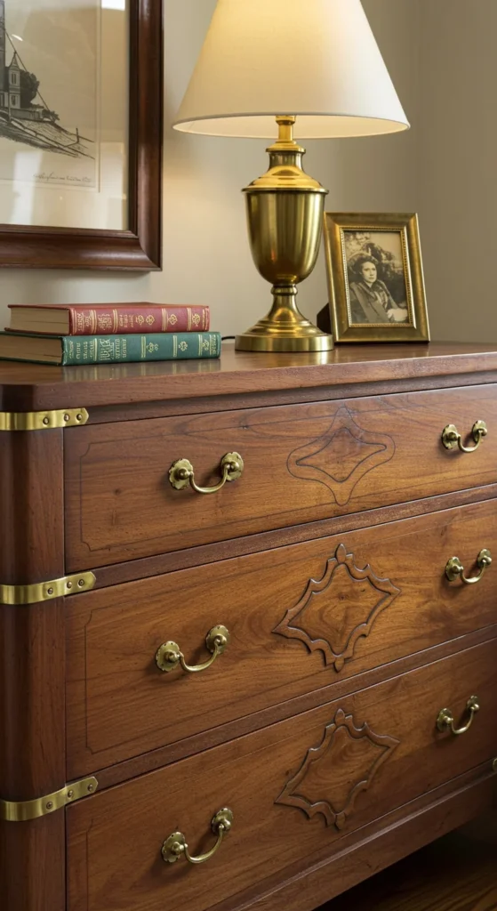 Wood tones make your room feel organic and balanced. A well-made dresser doubles as storage and a display area. Add a mirror or art piece above it. Mix metal accents like brass or black for a modern contrast.