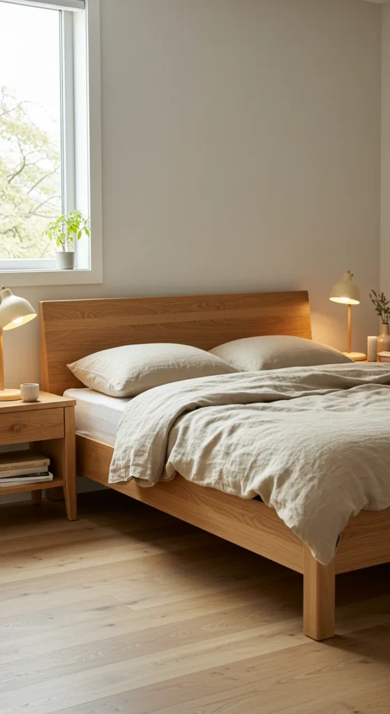 Matching lamps create balance. They visually frame the bed and add gentle lighting. Choose shapes that echo your room’s aesthetic — curved for softness, angular for modernity. A pair of identical lamps always makes the space feel intentional.