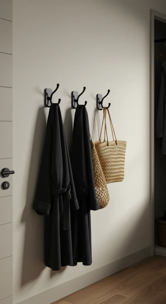 Hooks are small but make life easier. Mount a few near your closet or bathroom door for robes, hats, or accessories. Choose finishes that blend into your design — brass, wood, or black. It keeps things organized while looking chic.