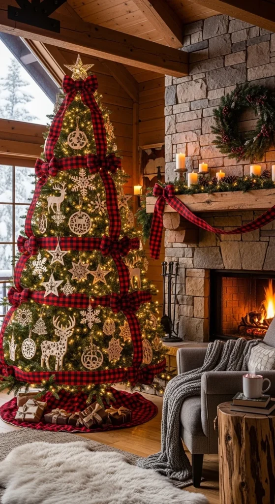 Add a touch of rustic charm with red and black plaid. It’s festive and comforting — ideal for cabin or farmhouse decor. Mix with wood textures, pinecones, and faux fur throws. It brings warmth to your space and feels perfect for casual family gatherings.
