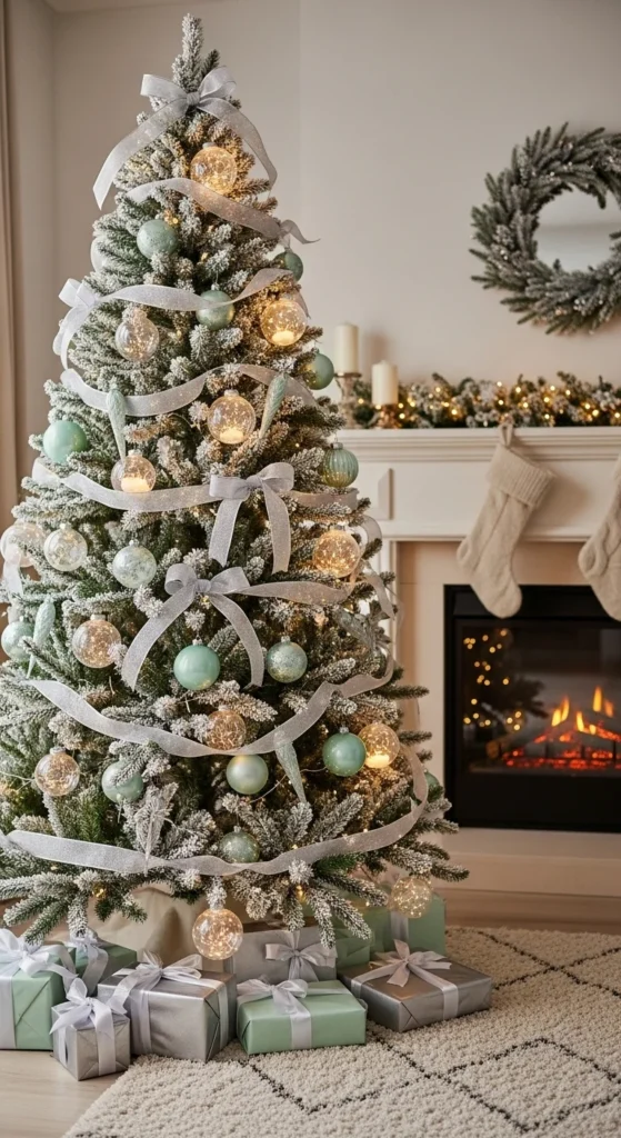 Mint green offers a fresh, playful take on traditional green. Paired with silver, it feels cool and contemporary. Add clear ornaments and frosted finishes to enhance the wintery vibe. This palette is perfect for smaller spaces that benefit from lighter, brighter tones.
