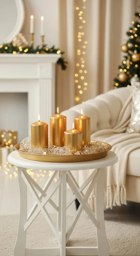Navy and gold offer a rich, elegant color story. The deep blue tones ground the space, while the gold adds radiance. Use satin ribbons, glossy ornaments, and gold candleholders to tie the look together. It’s ideal for creating a regal, moody holiday feel that still feels festive and balanced.