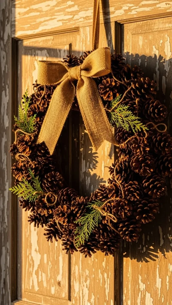 8. Rustic Pinecone and Burlap Wreath