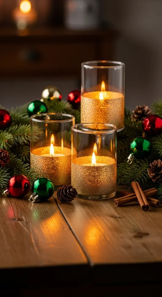 21. Glitter-Dipped Candle Holders