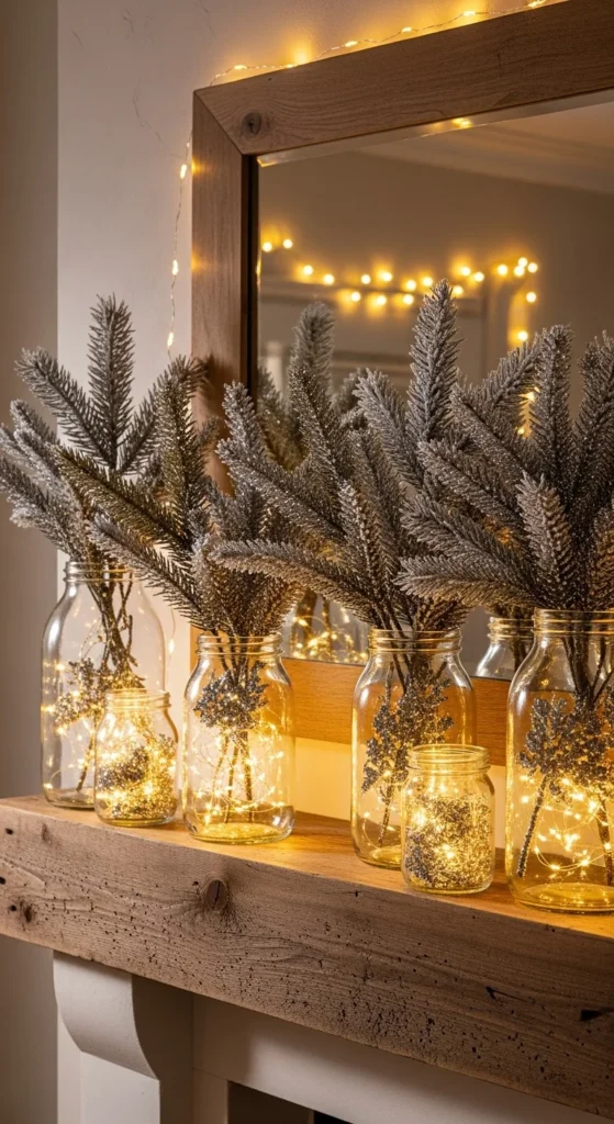 17. Glitter Pine Branch Jars