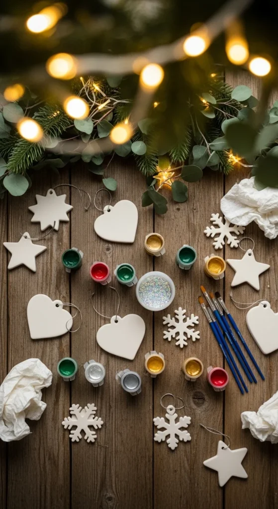 Setting up an ornament painting station invites creativity from everyone. Use plain ceramic, wood, or plastic ornaments. Kids paint simple shapes while adults add finer details. Spread out brushes and paints so everyone can choose their style. Painted ornaments become meaningful decorations year after year. Use old newspapers to protect the table. Add names and dates to turn the ornaments into keepsakes. This activity works well for parties or family gatherings because everyone can create at their own pace.