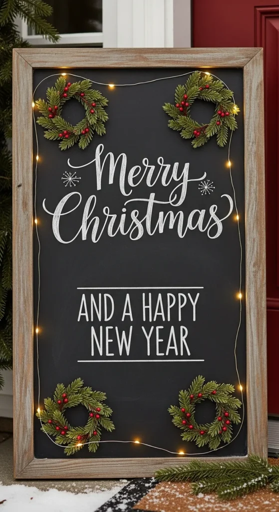 Add a personal touch with a holiday message board. Write cheerful greetings or countdowns to Christmas. Surround it with greenery or lights. It’s simple, reusable, and brings a handmade feel to your decor.