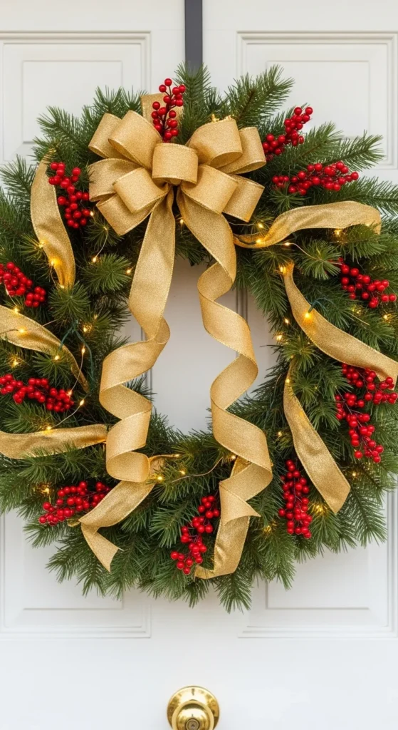 A wreath is the heart of every Christmas entryway. Choose one that matches your style — traditional with red and gold, or minimalist with neutral tones and dried elements. Add a ribbon that complements your home’s palette. Simple, timeless, and always welcoming.