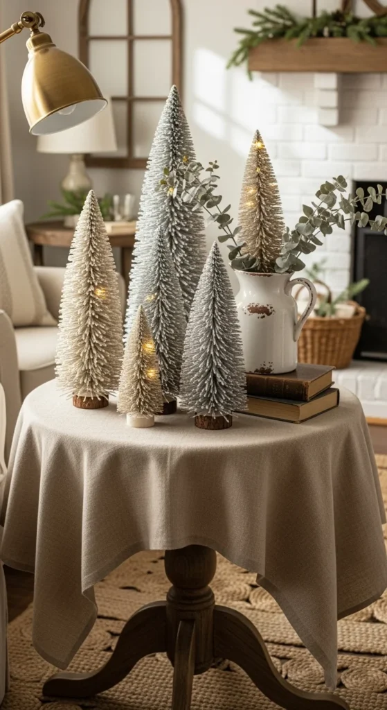 11. Flocked Mini Trees on Side Table