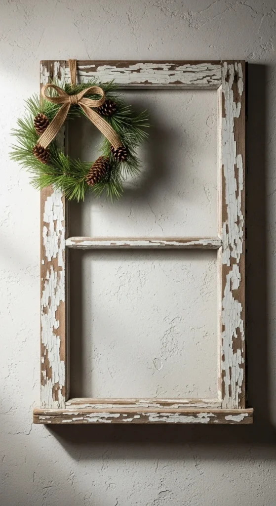 Old window frames add a calm, rustic backdrop to your decor. Hang one above a console table or fireplace. Attach a small wreath for seasonal color. You can often find these frames at flea markets for cheap. A bit of sanding helps soften sharp edges without removing character. They bring subtle charm without overpowering the room.