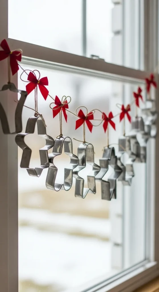 This one’s perfect for bakers. Create a garland out of cookie cutters by threading twine through the tops and adding bows. Hang it across a window or along open shelves. It’s playful, kitchen-themed, and super easy to make with items you already have on hand.