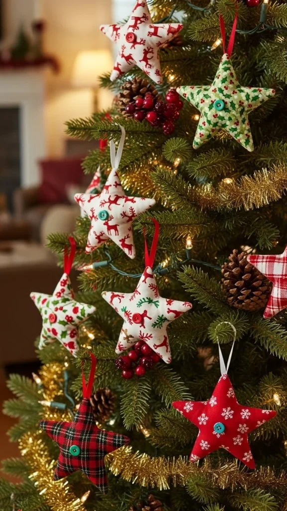 Fabric scrap stars add pattern and charm. Cut two star shapes from leftover fabric and sew them together, leaving a small gap to stuff lightly. Add a loop for hanging. These ornaments work well if you love quilting or sewing. They’re a great way to reuse old materials while creating something meaningful. Each star has its own personality depending on the pattern.