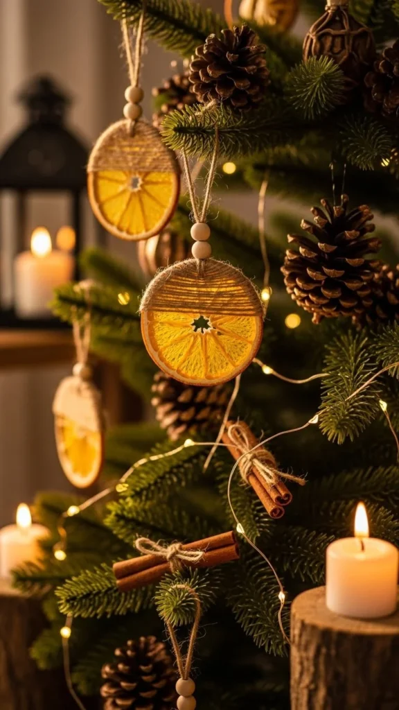 Dried orange slices bring warmth and natural color. Slice oranges thinly and dry them in the oven until translucent. Thread twine through each slice. These ornaments smell wonderful and pair nicely with rustic or boho decor. Combine them with cinnamon sticks for extra scent. They’re low-cost and easy to make in large batches.