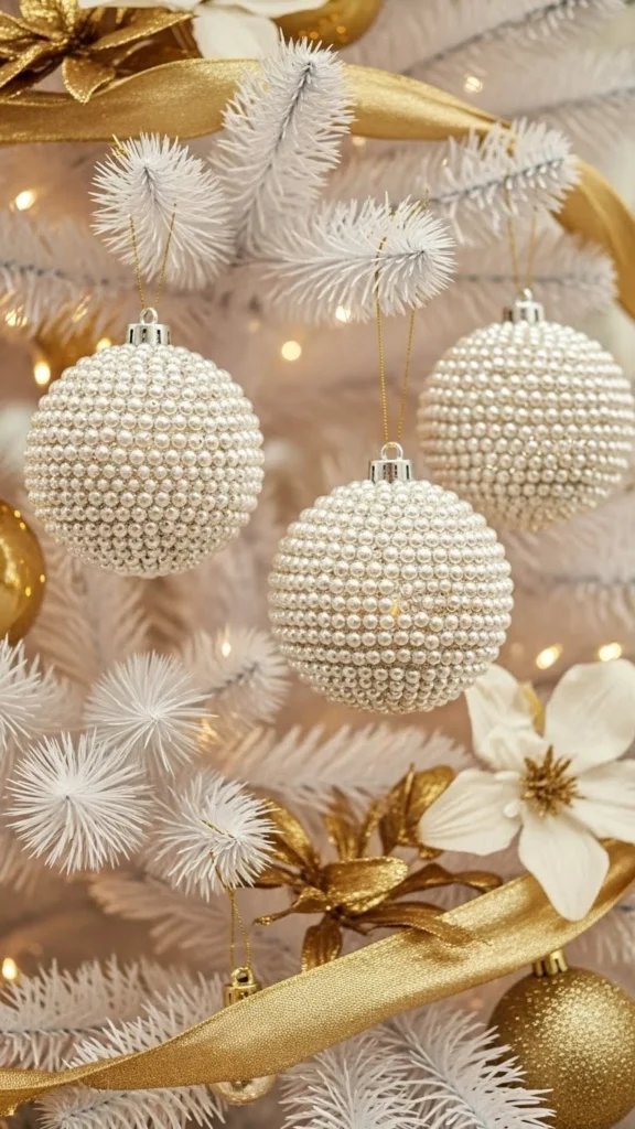 Pearl-covered ornaments feel polished and elegant. Start with foam or plastic balls, coat them with glue, and press pearl beads all around the surface. Let them dry fully before adding ribbon. These ornaments create subtle shine without overpowering the tree. They fit seamlessly with glam, modern, or soft neutral decor styles. Make a full set for a cohesive look or mix them with metallic ornaments.