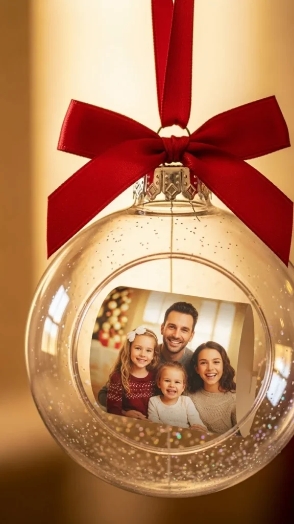 Photo ornaments create emotional moments every year. Print miniature versions of family pictures and slide them inside a clear ornament. Add soft glitter or confetti behind the photo to frame it gently. This makes a meaningful gift for grandparents or siblings. Update a few each year to create a timeline on your tree. It’s a heartfelt way to display family memories during the holidays.