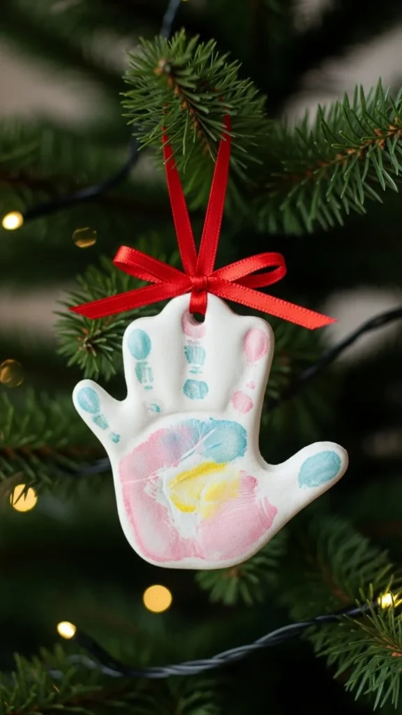 Salt dough ornaments become treasured keepsakes. Mix flour, salt, and water, then press a small child’s hand into the dough. Cut around it and bake until dry. Paint lightly or leave natural. These ornaments age beautifully over time. Families love pulling them out each year and remembering how tiny those hands once were. Make one per child so every year feels special.