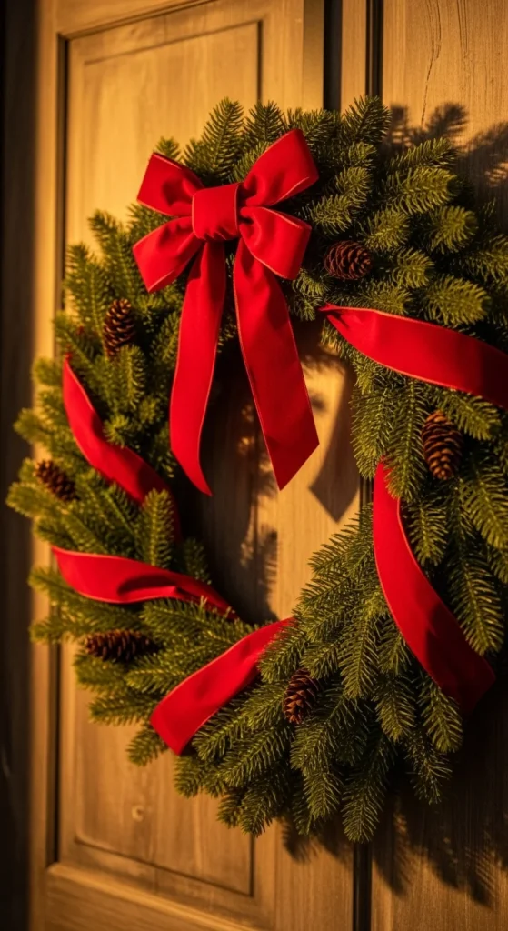 1. Classic Pine and Ribbon Wreath