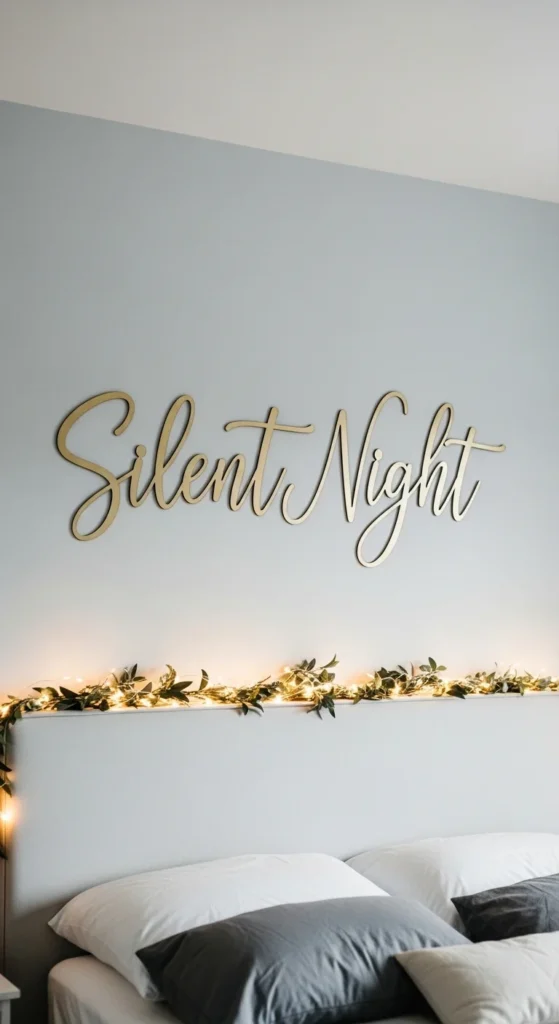 A wall quote adds personality without clutter. Use vinyl wall decals or framed calligraphy that reflects the season — “Silent Night,” “Merry & Bright,” or “Peace on Earth.” Surround it with twinkle lights or greenery for warmth. It’s inexpensive, easy to remove, and adds a heartfelt final touch to your Christmas bedroom retreat.