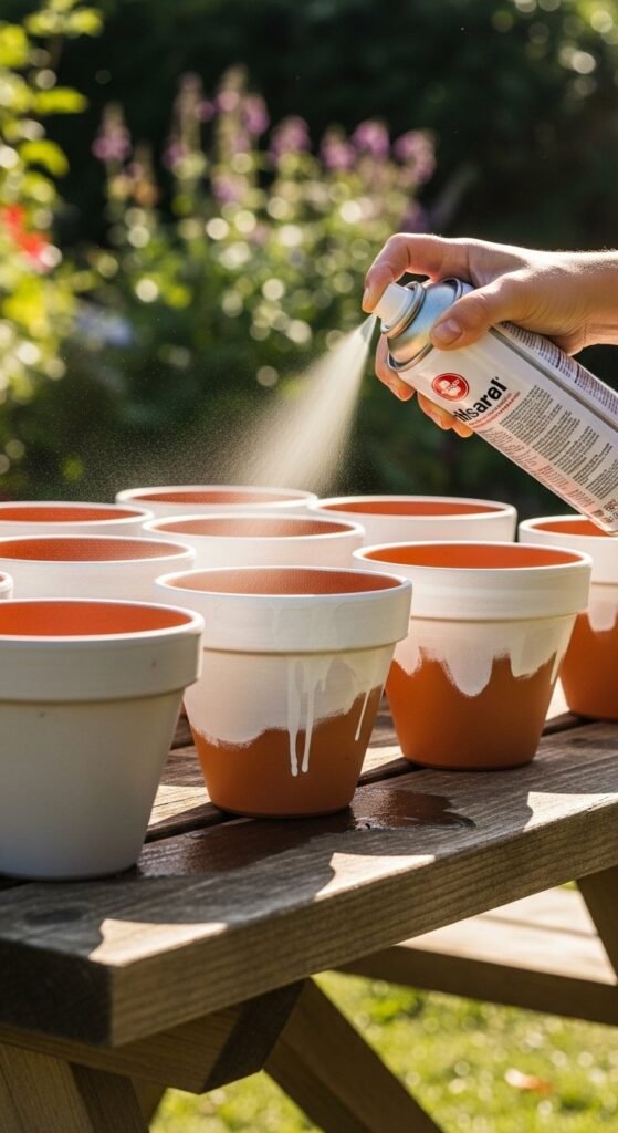 - Outdoor pots: Waterproof spray sealer or exterior varnish.