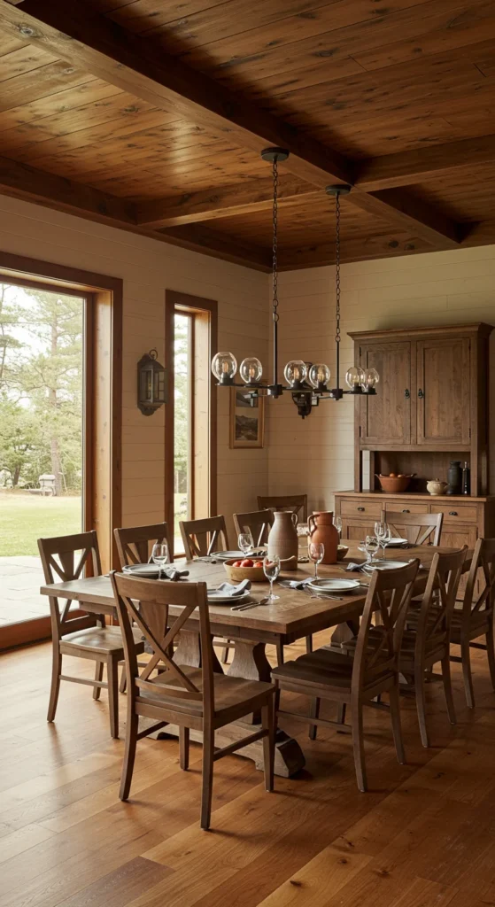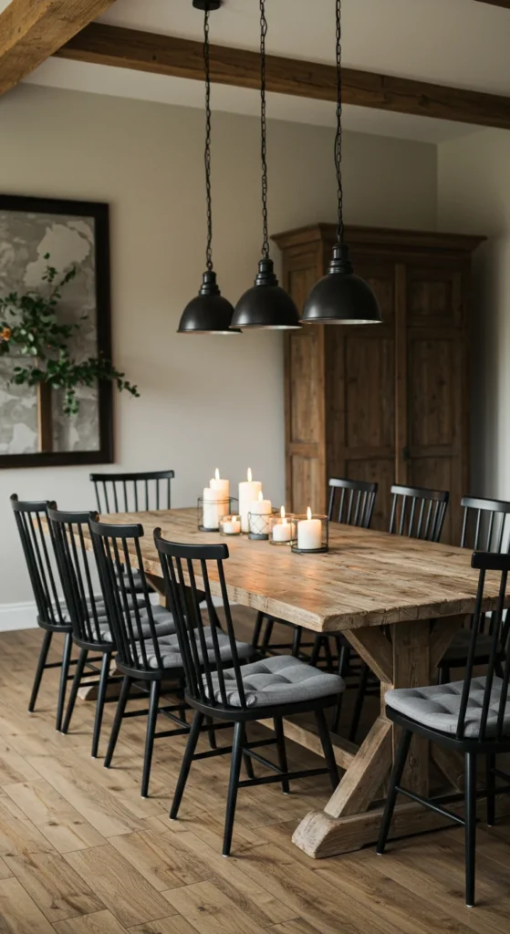 Farmhouse tables invite connection. The sturdy wood surface feels authentic and relaxed. Pair with mismatched chairs or benches for charm. Sand and reseal old wood for a DIY version that looks high-end. **A rustic table sets the mood for long, cozy meals.**