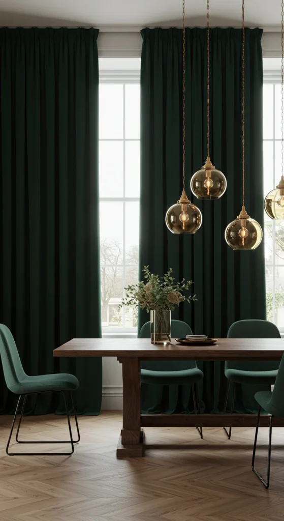 Curtains bring softness and mood. Velvet feels luxurious, while linen adds an airy flow. Mount rods high to elongate the space. Dark fabrics create drama, while light ones keep things serene. They’re an easy upgrade that defines your dining area beautifully.