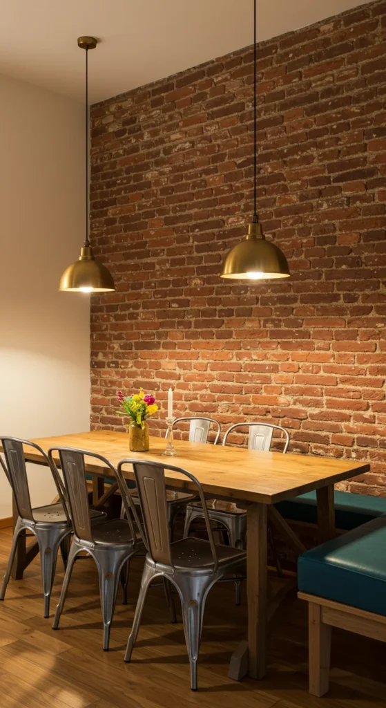 Brick adds history and warmth. If you have it, let it shine. Balance the rugged texture with soft fabrics like linen or velvet. Hang minimal decor to keep it authentic. A perfect mix of rustic and modern.