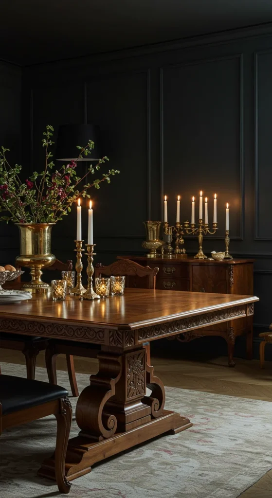 Wall sconces add soft light and balance. Place them above sideboards or art pieces. Brass and matte black work best for timeless appeal. Dim lighting helps create a cozy, intimate atmosphere for dinners that linger.