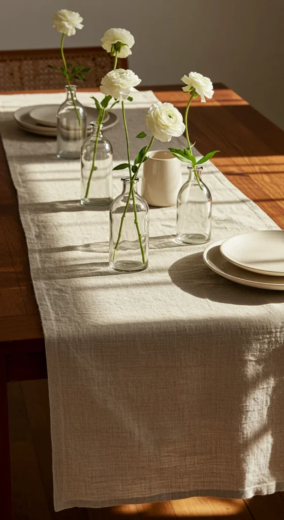 You don’t need a dinner party to enjoy a styled table. Keep a simple runner, a vase, and one decorative item like a bowl or tray. Refresh flowers weekly for energy and warmth. **Every meal feels intentional when your table looks cared for.**