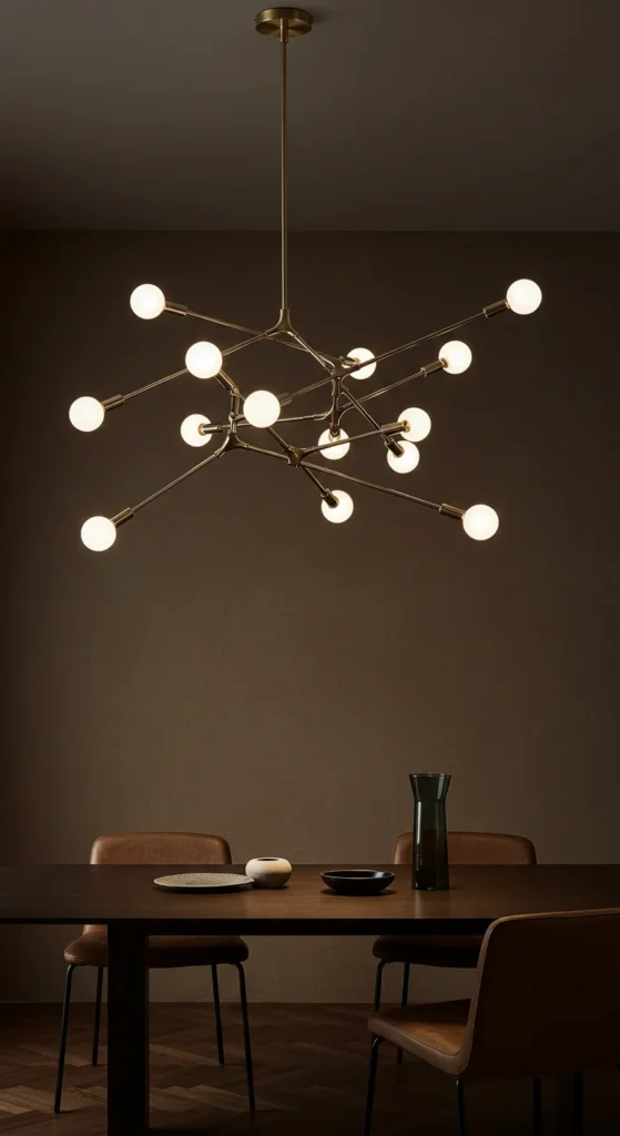 Lighting can be functional art. Go sculptural — branching arms, organic shapes, or floating globes. Center it over the table for balance. Keep other decor minimal so it shines as the visual statement in the room.