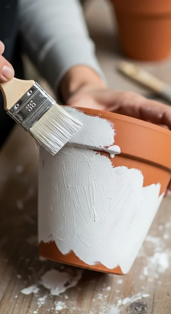 If the pot is glossy, lightly sand it first so paint sticks better.