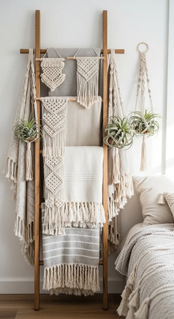 22. Boho Ladder Display with Textiles