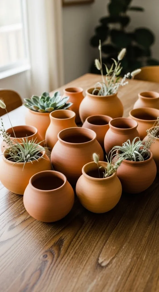 23. Clay Pot Cluster Table Centerpiece