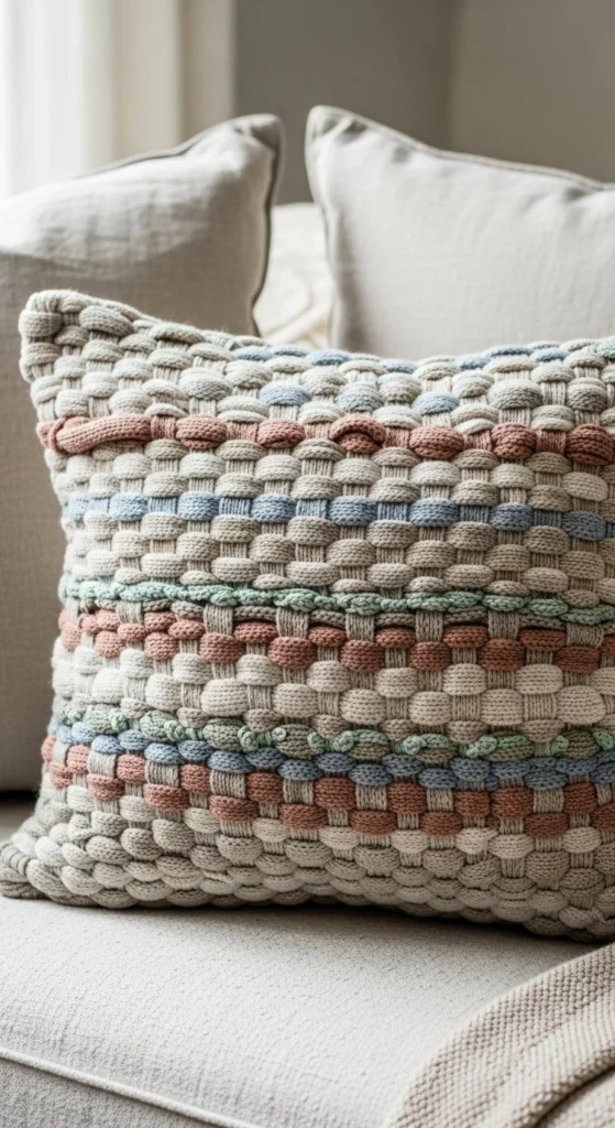 25. Upcycled Sweater Woven Cushion