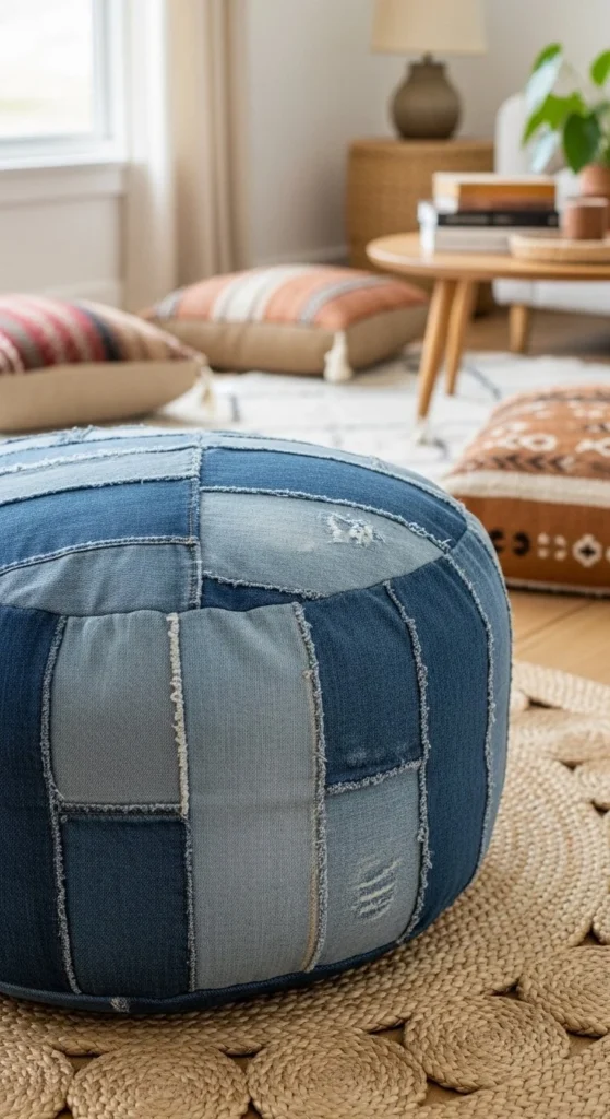 4. Denim-Upcycled Boho Floor Pouf