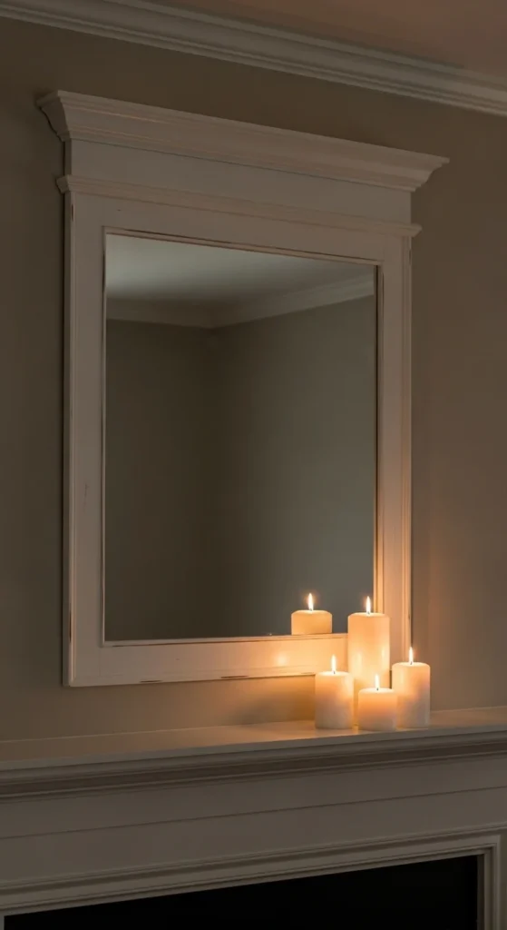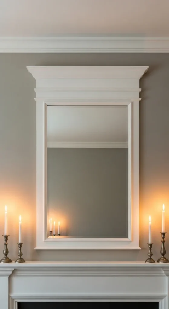 Use lightweight foam molding for easier install. Caulk seams for a clean finish. This works especially well above mantels or consoles.