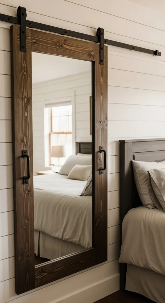 Budget option: buy a basic hardware kit and build the “door” from plywood with trim. Paint or stain after assembly. This style works best in bedrooms or dressing areas where a tall mirror earns its keep. Pair it with simple linens and muted colors so the hardware doesn’t feel heavy.