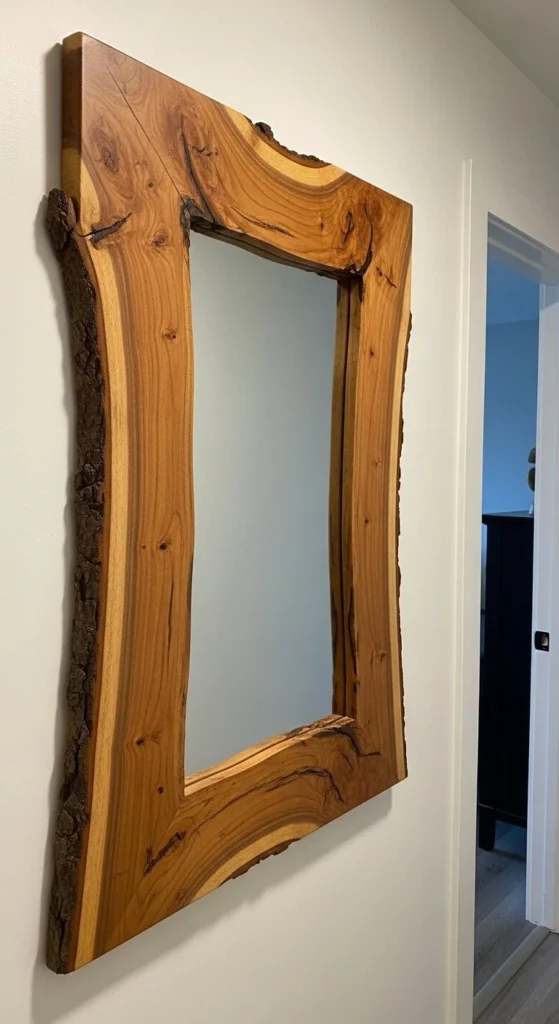 Live edge wood frames feel custom and natural. Use a single slab or join a few narrow pieces. Sand lightly to smooth rough spots, but keep the organic edge. Apply a light coat of clear sealant for protection. Organic luxury on a budget comes from sourcing scrap or reclaimed wood. Glue and small corner brackets keep it stable. Perfect for hallways or bedrooms. Costs vary, often $30–$45.