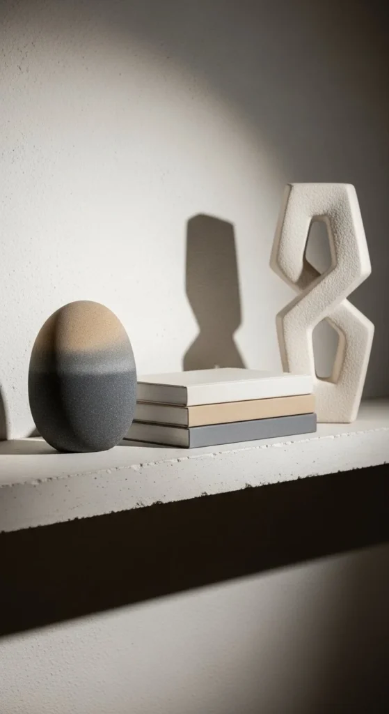 DIY option: shape air-dry clay into organic forms. Don’t smooth too much. Texture adds character. Seal with matte varnish. Strong silhouettes read clearly even from across the room.